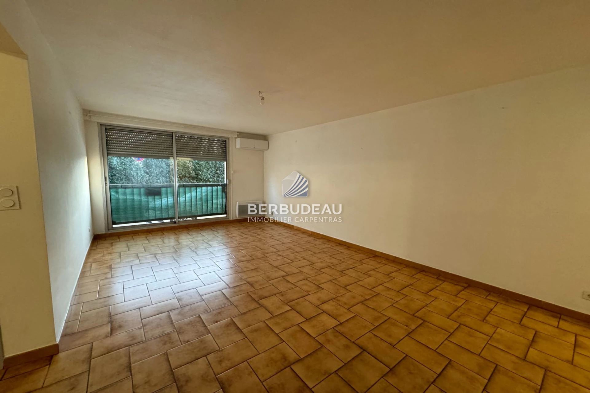 Grand P2 climatisé en RDC avec cellier et grand séjour, chambre avec placard.