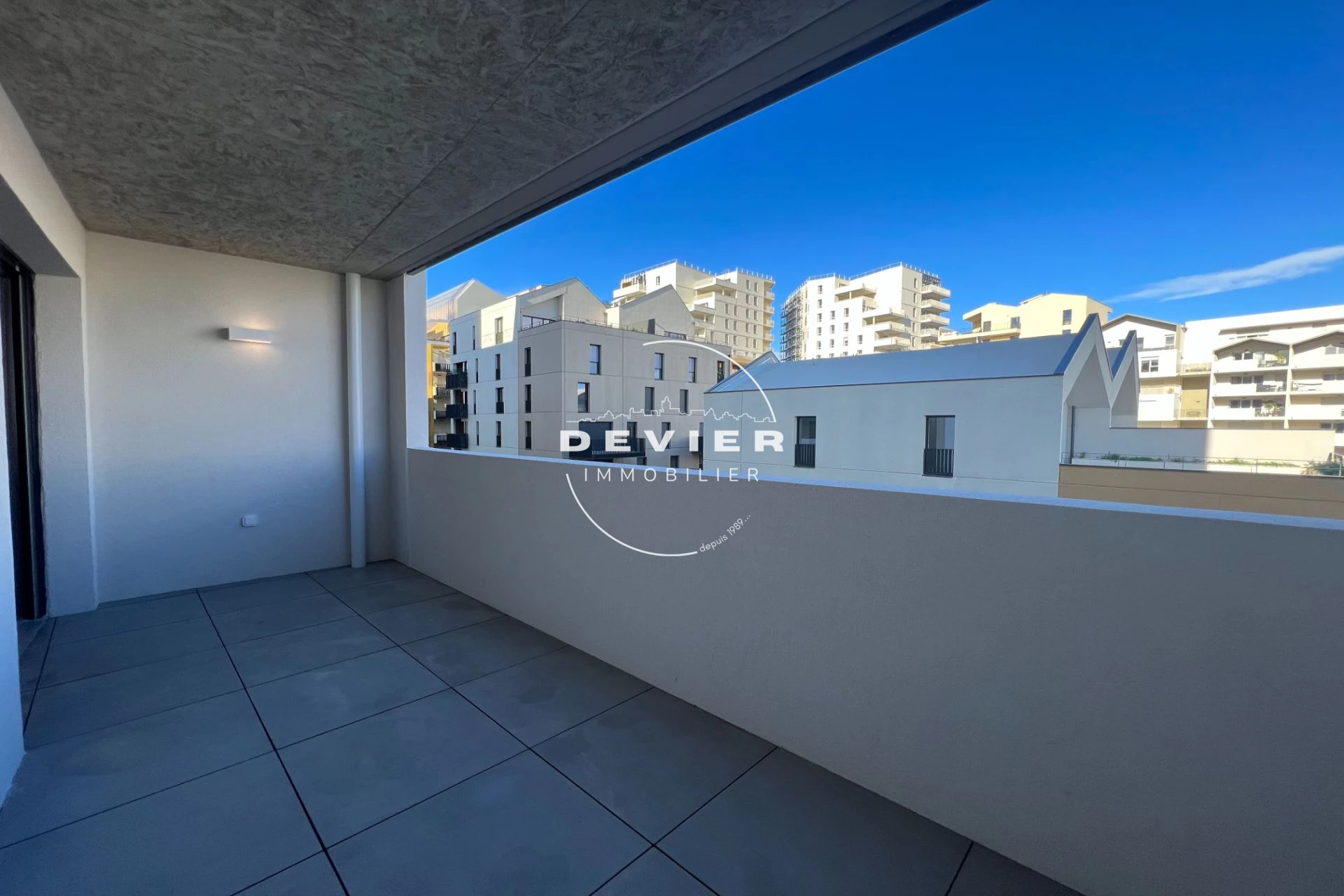 À louer, un charmant appartement de 43m2 au 3ème étage d'une résidence neuve. Cet appartement de type T2 dispose d'une terrasse de 10m2, idéale pour profiter des journées ensoleillées. Il comprend une cuisine équipée avec plaques de cuisson et hotte, ouverte sur un séjour lumineux. Vous trouverez également une chambre de 11m2 et une grande salle de douche.