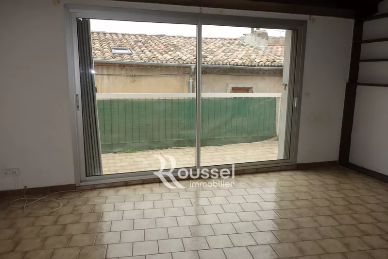 Poussan Centre Ville au deuxième étage d'un immeuble ancien appartement de type 2 avec terrasse plein sud.