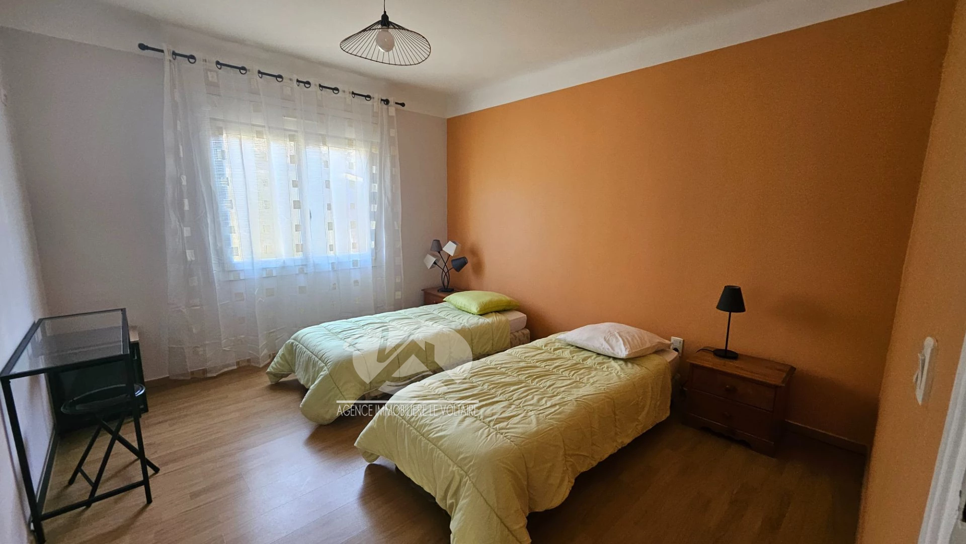 Bel Appt T3 meublé de 63 M² SH au 2ème étage, comprenant, 2 CH, 1 Séjour avec Cuisine ouverte équipée, 1 SDE, 1 Toilette séparé, 1 Belle Terrasse de 22 M² et un Garage partagé.