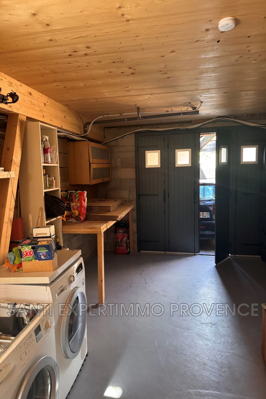 Garage avec buanderie (lave-linge, sèche-linge, point d'eau) et espace atelier