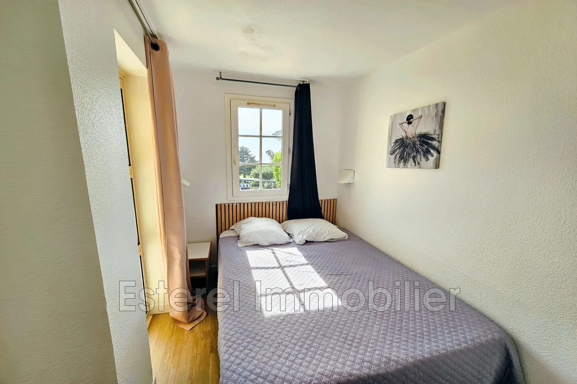 Agay, dans le superbe village de Cap Esterel, niché entre la mer et l'Esterel. À saisir, très belle opportunité pour ce 2 pièces atypique en rez de jardin de 27.53 m² loi Carrez + terrasse de 8.6 m² avec jouissance d'un jardinet, offrant un superbe panorama sur la mer et le domaine. Situation centrale dans le village et facile d'accès. Climatisé. Libre de gestion - idéal pied à terre ou investissement locatif.