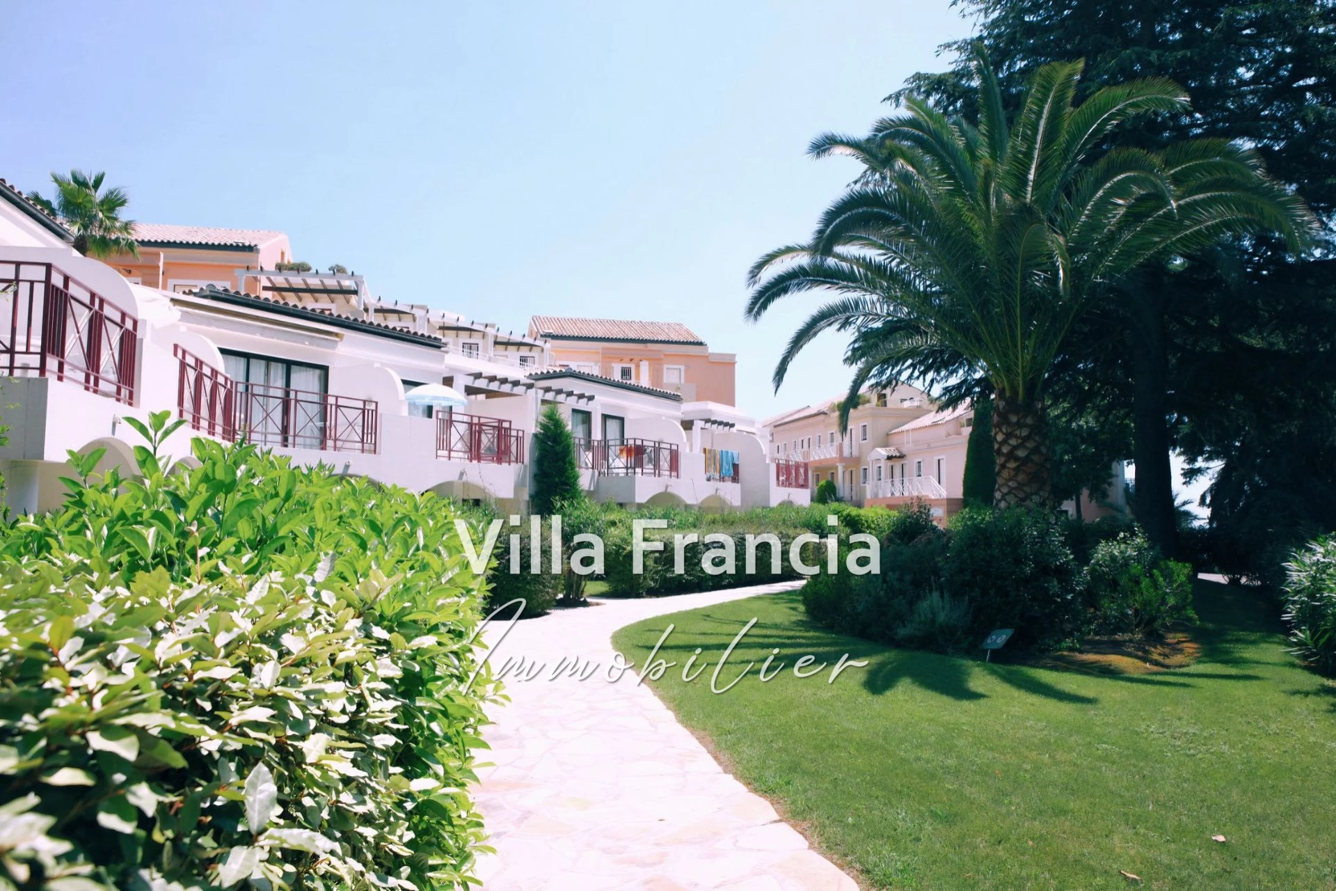 La Villa Francia, résidence de charme dans le secteur prisé de la Croix des Gardes. Sur place, jardins piétons, superbe piscine à débordement offrant une vue d'exception, court de tennis ainsi que terrain multisports.