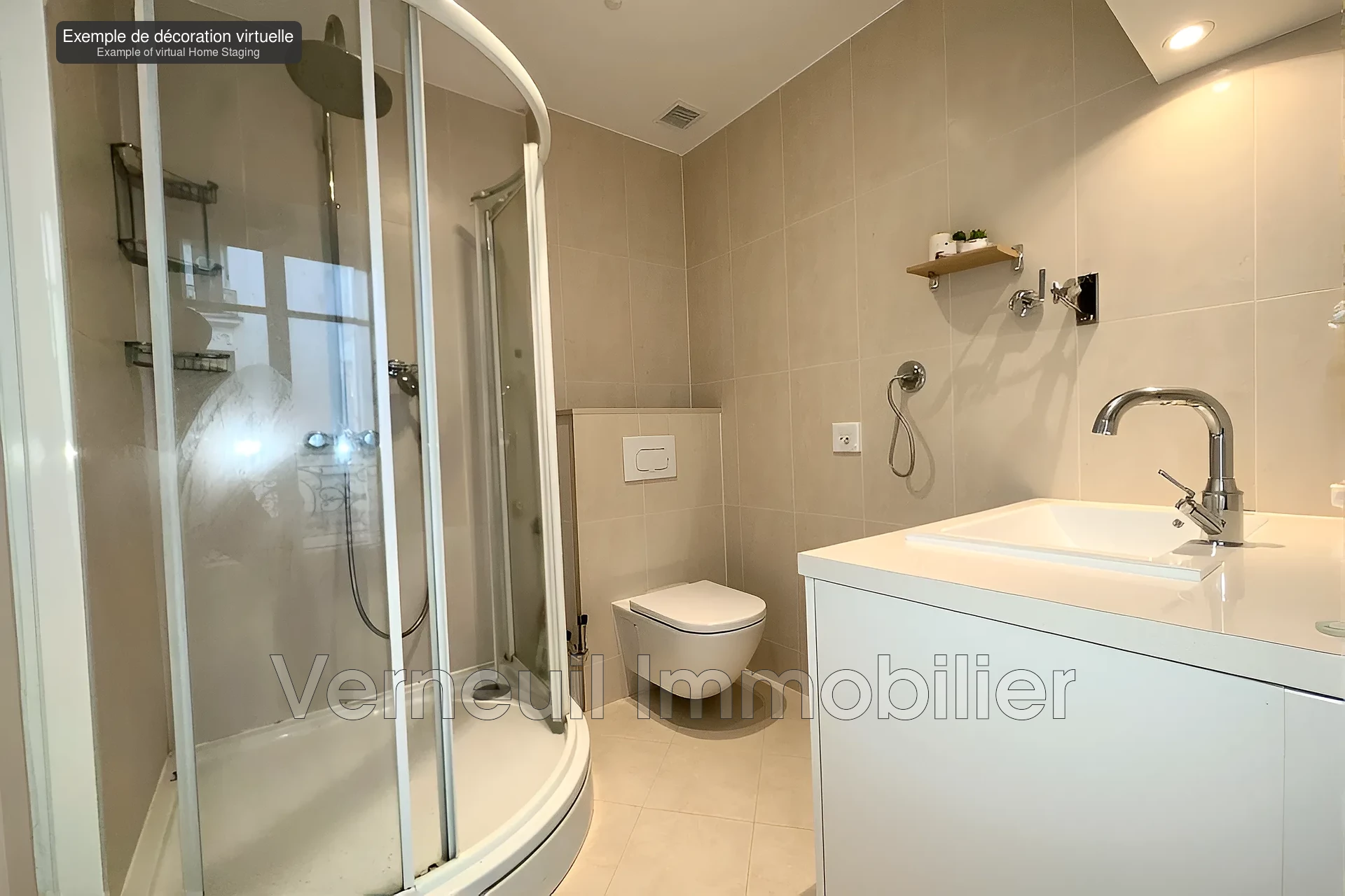 L'appartement se compose d'une entrée, d'une double réception, une cuisine séparée/équipée, une chambre avec sa salle de bain et toilettes attenants ainsi que d'un toilette invité.
