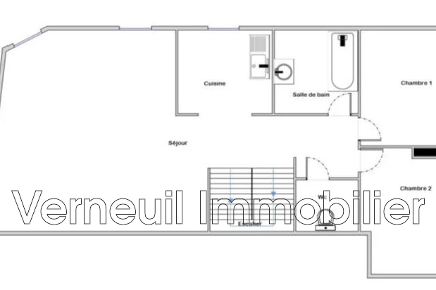 Il se compose d'un double séjour de 44 m2 lumineux, de deux chambres (avec possibilité d'aménager facilement une troisième), d'une cuisine ouverte, ainsi que d'une salle de bain et un WC séparé.