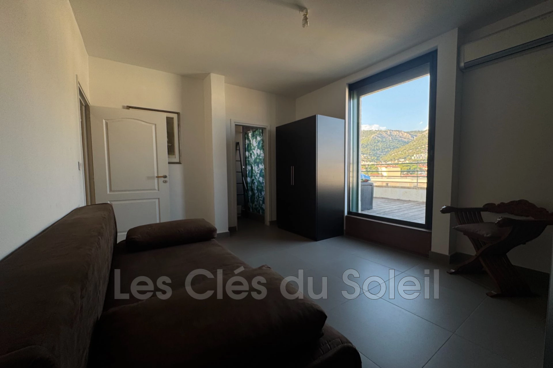 Nichée au 8ᵉ étage d'un immeuble de 9 étages, cette propriété offre une vue imprenable sur la rade de Toulon, le fort de Six-Fours et le Mont Faron.