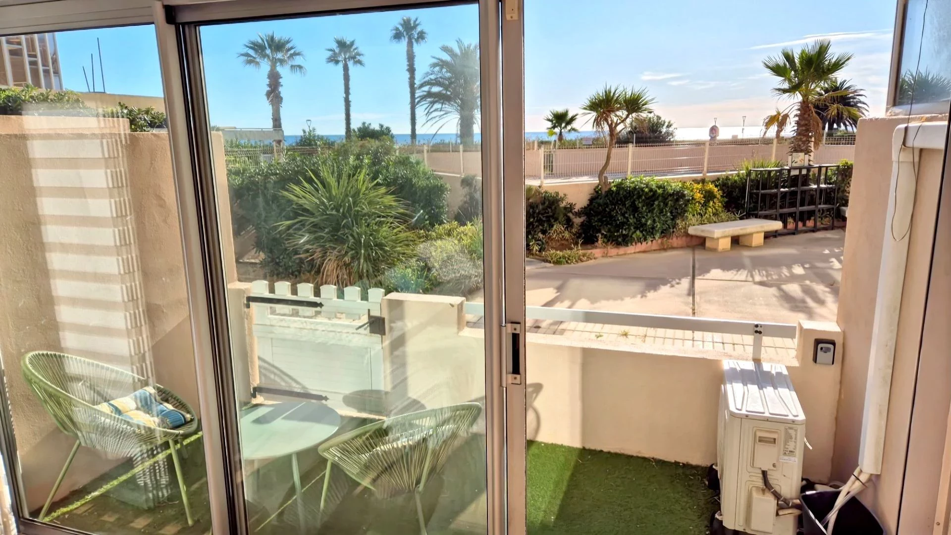 66140 Canet Plage, quartier Canet sud appartement de 54 m² habitable plus 44 m² de dépendance aménagé, dans résidence face mer avec piscine et accès direct plage entièrement rénové avec du caractère composé d'une pièce de vie avec cuisine équipée, deux chambres plus dépendance aménagé en dortoir. Appartement atypique avec prestations.