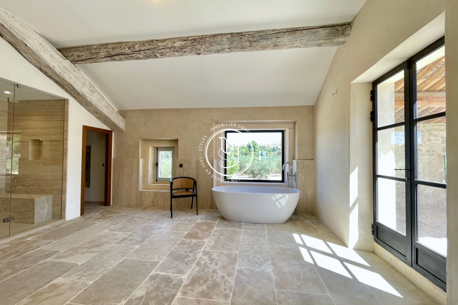 Ici, les plafonds en ogive, les sols en pierre, les grandes baies vitrées et les matériaux haut de gamme composent une symphonie parfaite entre héritage et modernité.