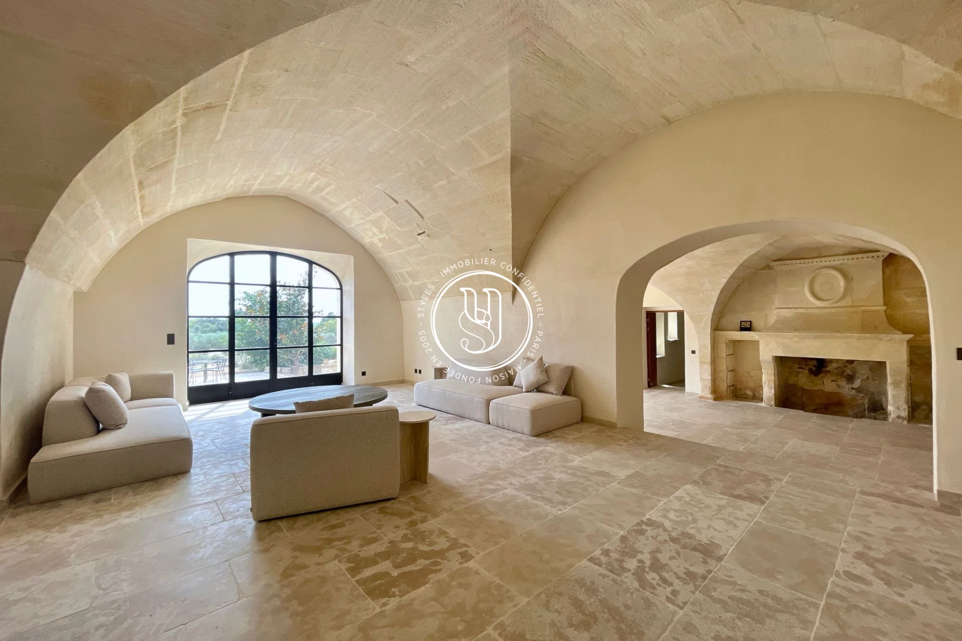 Ici, les plafonds en ogive, les sols en pierre, les grandes baies vitrées et les matériaux haut de gamme composent une symphonie parfaite entre héritage et modernité.