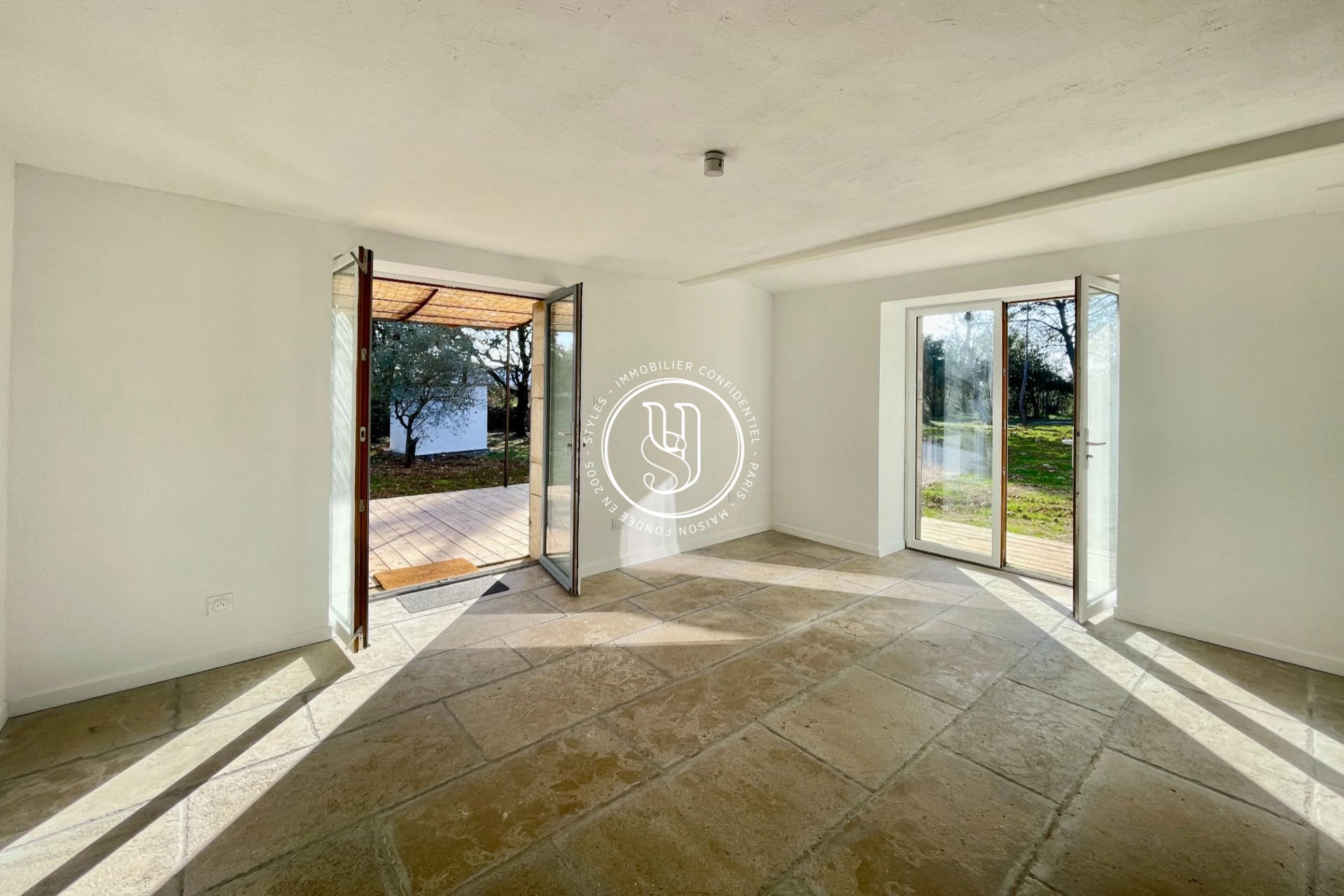 Un parc de 6 500 m² avec forage et une centaine d'oliviers, une piscine de 12X3,5, et une allée des pins qui nous dirige vers la maison. Quel décor, quelle ambiance, quel dépaysement, le tout aux portes de la cité ducale.