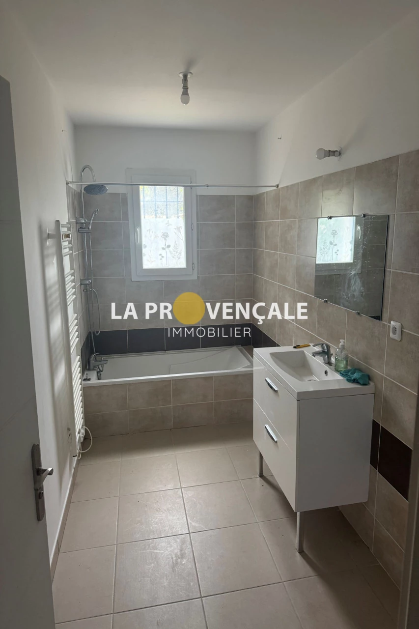 Gardanne - 13120 - Nous vous proposons à la vente en limite de Gréasque, cette jolie maison de 2014 en RT 2012, d'environ 100m² plain-pied, composée d'un hall d'entrée avec placard, d'une grande pièce de vie ouverte sur cuisine et donnant sur une terrasse couverte plein sud, de 3 chambres, d'une salle de bain, d'un WC et d'un coin buanderie.