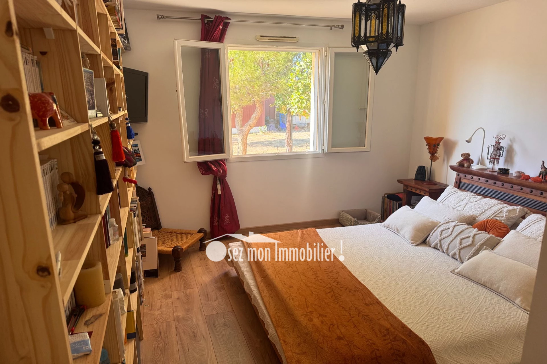 Exclusivité : Belle villa lumineuse, fonctionnelle, de 110 m2, T4, plain-pied, sur 1 415 m2 de terrain clos avec piscine. Cette maison rénovée avec beaucoup de gout offre un beau séjour cuisine équipée donnant sur les terrasses pour vos repas d'été et sur la véranda. Un hall d'entrée avec vestiaire. 3 chambres avec placards. Une salle d'eau. wc séparé avec lave main. De belles prestations : double vitrage, cuisine entièrement équipée, climatisation réversible, panneau photovoltaïque pour payer vos factures. La piscine 8X4 avec bâche à lame et pompe à chaleur pour en profiter hors saison. Grand garage. Le terrain est clos et très bien entretenu. Arbres fruitiers, oliviers. Très calme et aucun vis-à-vis. Possibilité d'extension si nécessaire. Village situé à 15 minutes de Narbonne et de Lézignan. Un havre de paix à voir sans tarder. Pour visiter, contacter Guylaine Bertrand 06.03.11.71.94