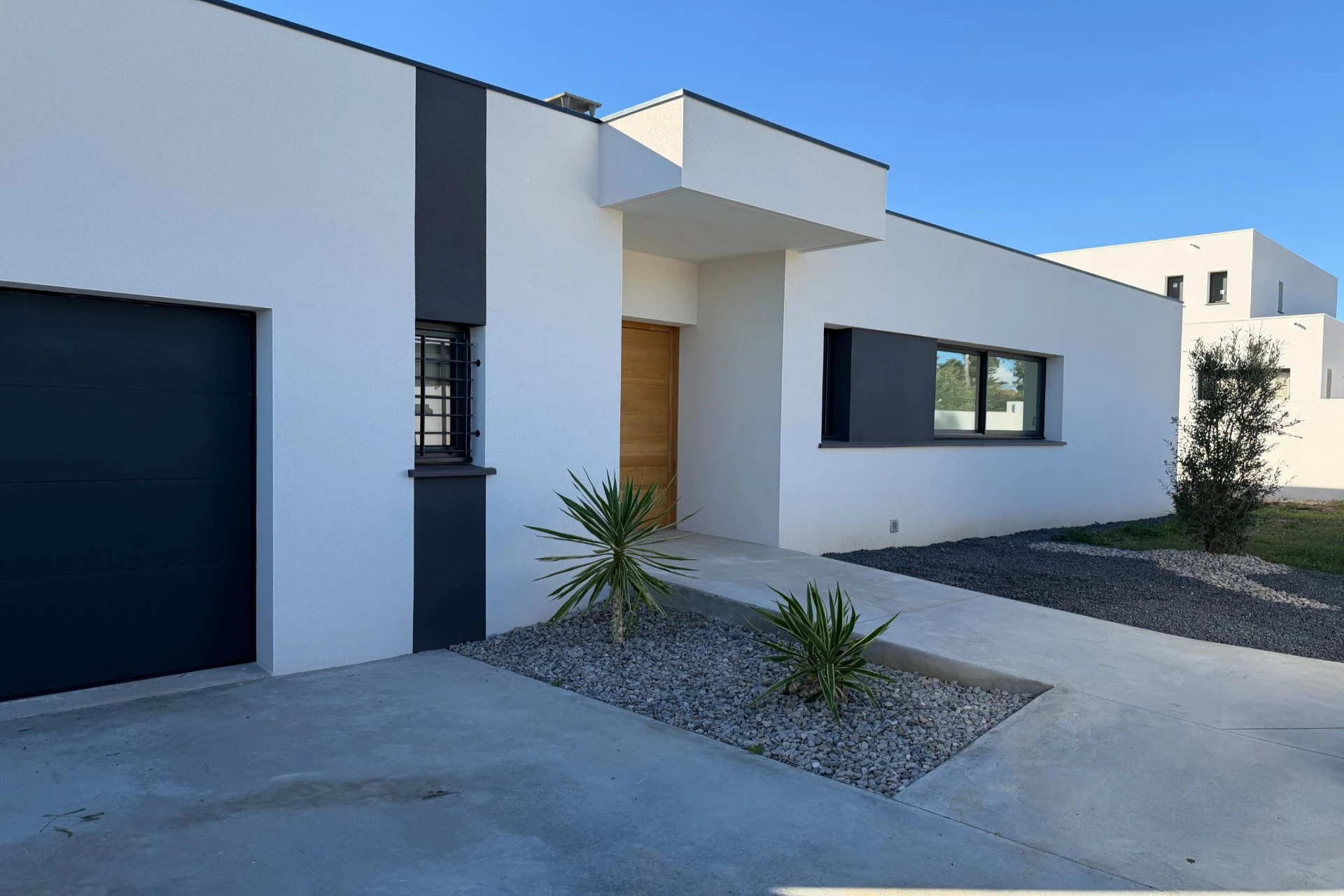 Une villa contemporaine neuve d'une surface habitable de 110,94m² sur un terrain d'une superficie de 539m², composée d'un hall d'entrée, séjour-salon avec cuisine ouverte, 3 chambres dont 1 suite avec dressing et salle d'eau privative avec wc. Une salle d'eau avec wc. Un toilette séparé. Un garage de 26m². Livraison Février 2026. Possibilité piscine en supplément.