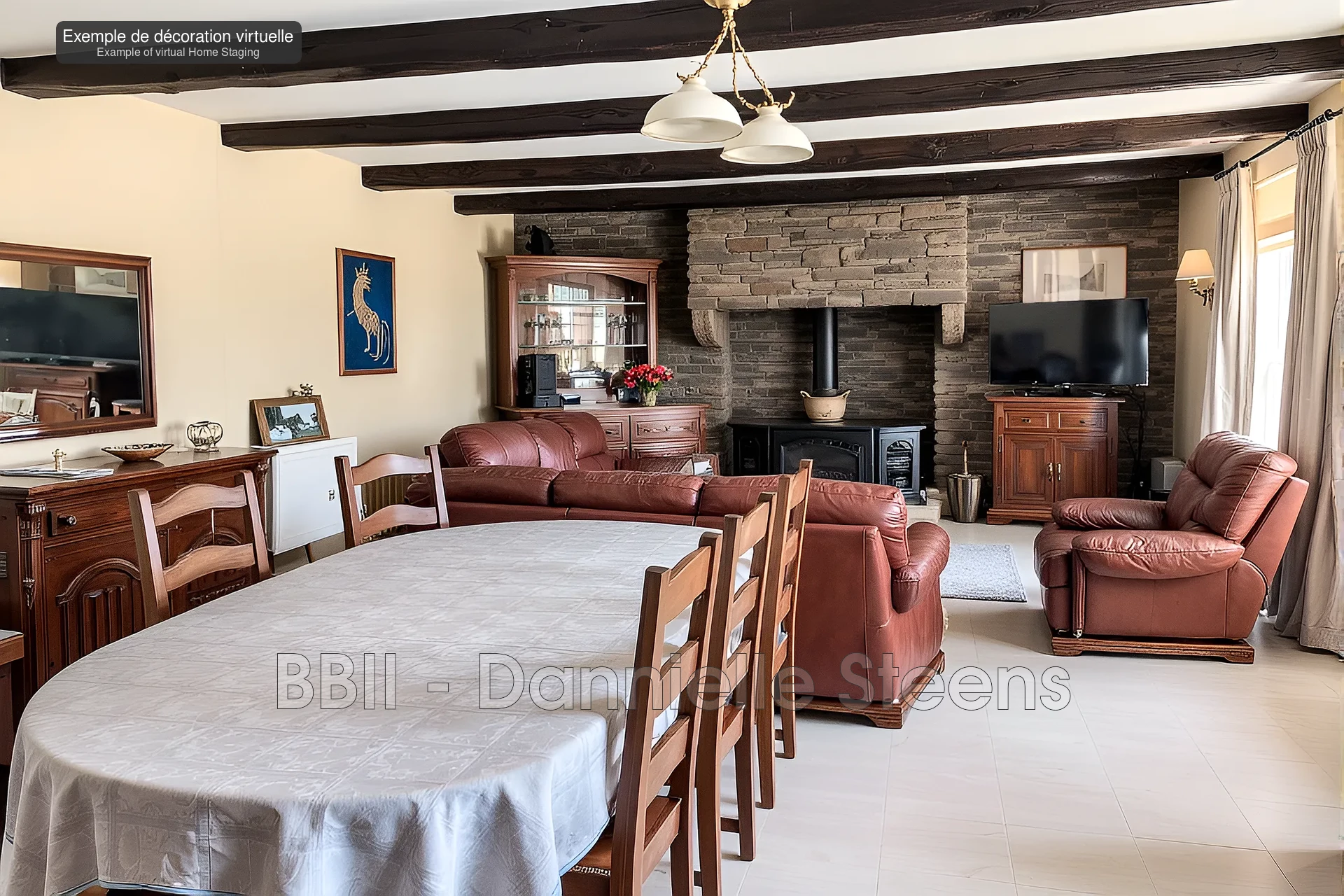 Au rez-de-chaussée : Une entrée dessert un bureau, une cuisine avec cheminée / insert et un beau séjour de 41m² avec cheminée / insert également.