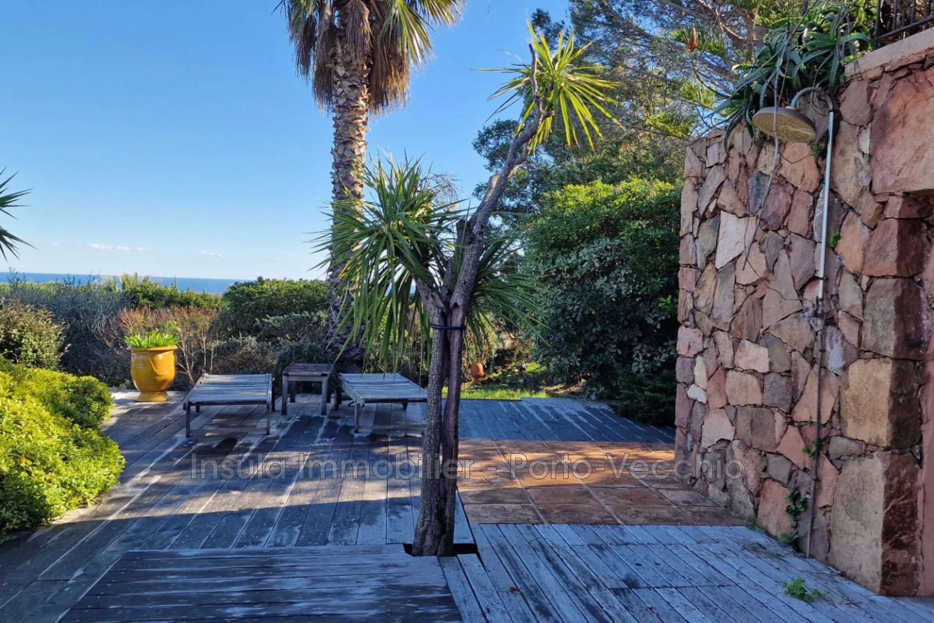 Cette maison individuelle de 5 pièces d'environ 115 m2, répartie sur deux niveaux, se situe à Porto-Vecchio. Elle offre trois chambres, de beaux espaces de vie et un extérieur généreux avec terrasse, balcon, jardin et piscine, le tout dans une construction en pierre au toit plat, avec de belles pierres apparentes. La maison bénéficie d'un bon niveau de confort avec climatisation, double vitrage et volets roulants électriques, ainsi que d'un séjour agréable avec cheminée. Une cave, un cellier, un couloir de distribution, une buanderie et des rangements intégrés complètent l'ensemble. L'environnement est apprécié pour sa vue dégagée et la proximité des commodités, tandis que les plages de Saint-Cyprien et Cala Rossa sont accessibles en une dizaine de minutes. La propriété repose sur un terrain d'environ 2 203 m2, avec un jardin d'environ 1 800 m2, un stationnement couvert pour deux véhicules et des espaces extérieurs propices à la détente.