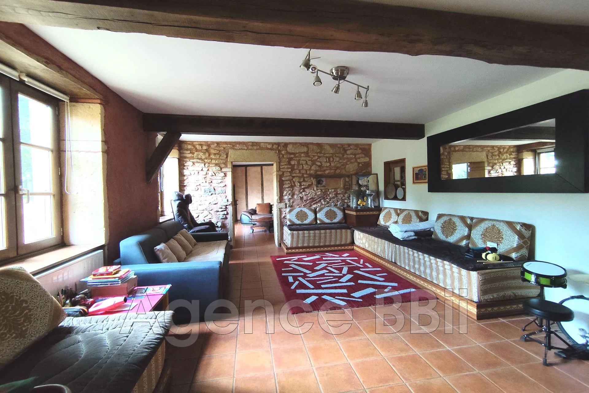 Vous serez séduits par ses éléments authentiques : poutres apparentes, murs en pierre, enduit à la chaux.