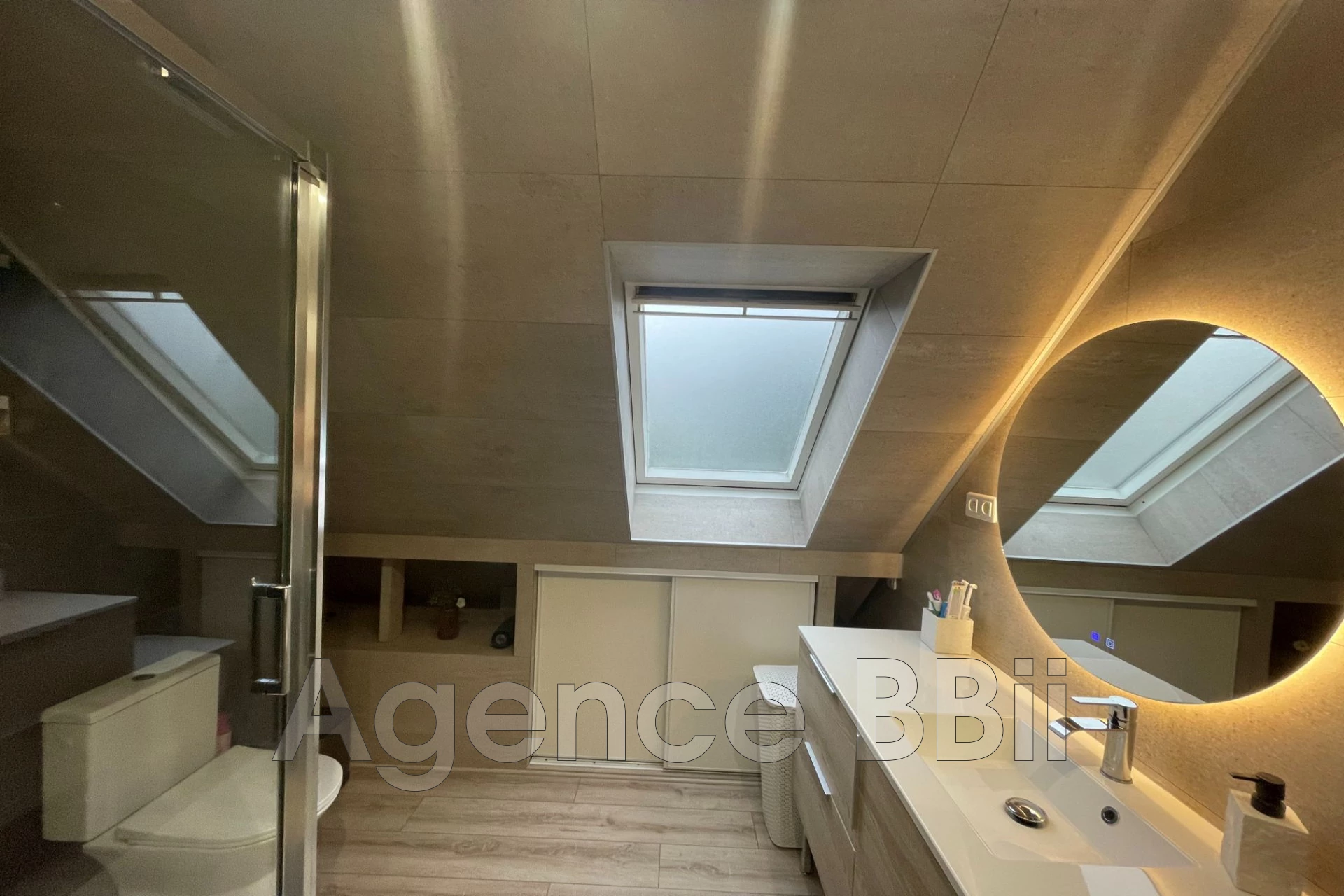 - salle de bain moderne et spacieuse entièrement rénovée début 2025 (grande douche + placard sous comble)