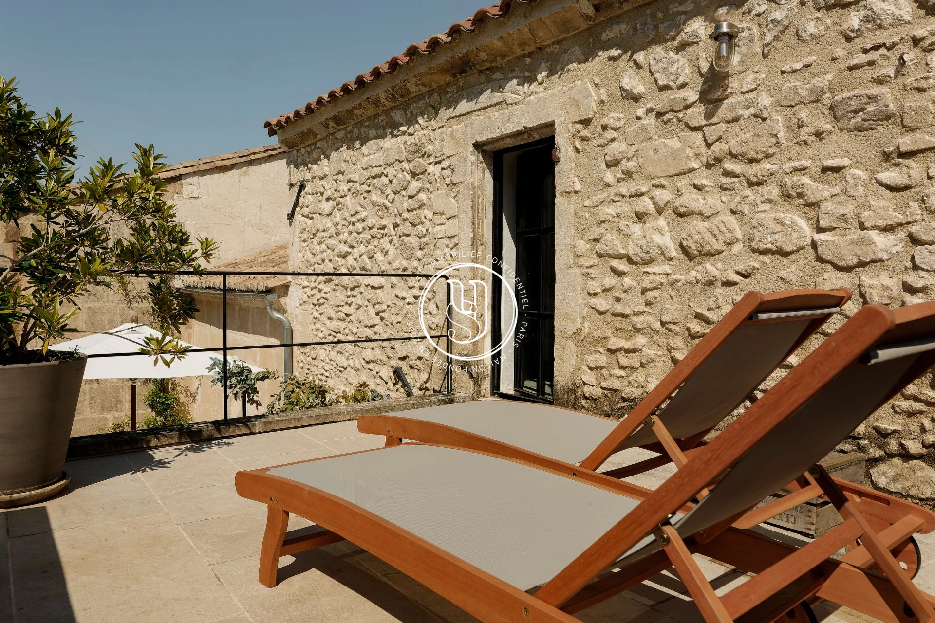 Bienvenue au cœur du village pittoresque de Fontvieille, là où le temps semble suspendu, et ou se cache une propriété d'exception. Une maison en pierre datant du début du XIXe siècle, métamorphosée en 2020 pour offrir une expérience de vie qui marie à la perfection charme ancien et raffinement contemporain.