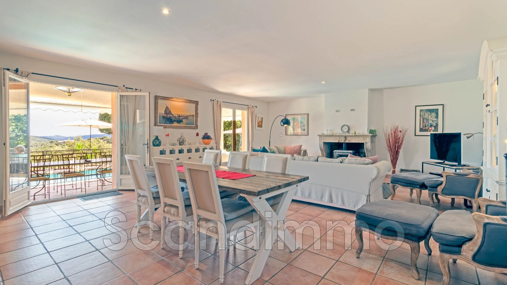 Très belle villa provençale avec superbe vue panoramique, 4 chambres, piscine, grand terrain, à quelques kilomètres du golfe de Saint-Tropez et ses plages magnifiques.