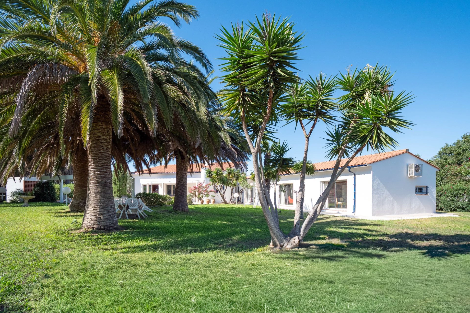 66000 Sur la route des plages, superbe propriété de 256 m² habitables entourée d'un parc arboré de 2600 m² au calme et sans vis-à-vis L'entrée spacieuse et lumineuse dessert la pièce de vie aux très beaux volumes avec cheminée, la cuisine équipée indépendante, le tout donnant sur de larges terrasses et son originale piscine ronde à débordement.