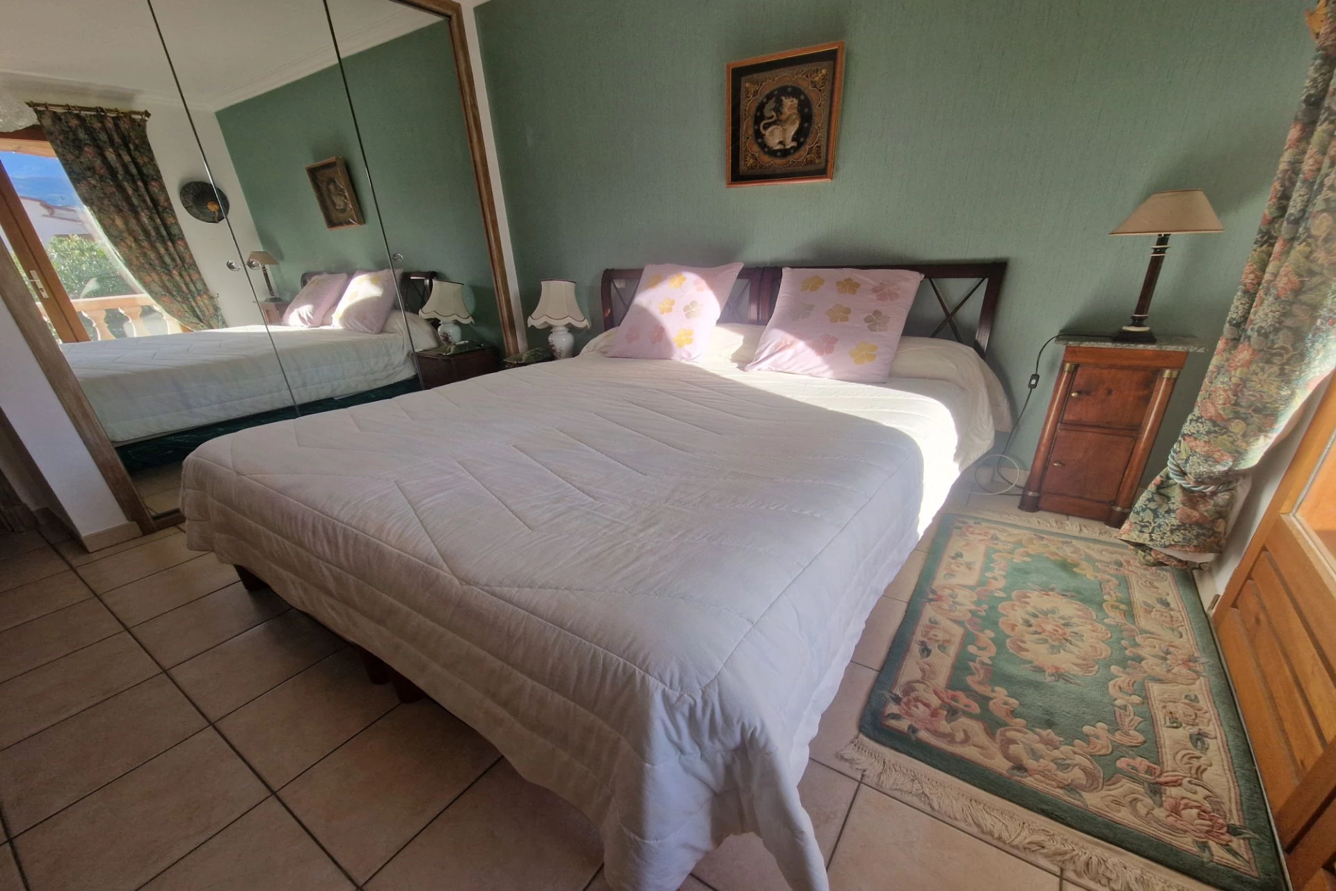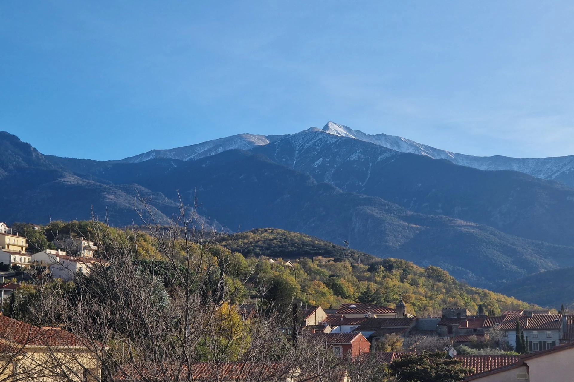 À l'étage 3 chambres dont deux avec accès sur une terrasse avec vue sur le Canigou, un bureau, une salle d'eau et un wc..