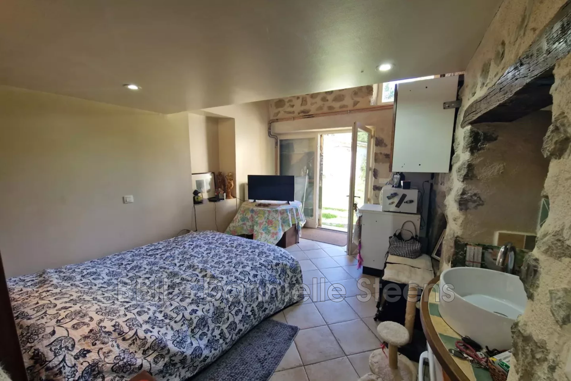 PLUS : Deux studios indépendants pour recevoir ses proches ou proposer des hébergements de gîtes. Le 1er d'une surface de 18m² est au RDC de la maison, le second d'une surface de 20m² est sous voute. Un cabanon, un atelier et une cave viennent compléter cette propriété. La piscine Desjoyaux de 10m x 5m est exposée plein sud avec vue sur la vallée et les montagnes. Un verger à truffes a été planté de 90 arbres il y a 25 ans. Terrain arboré de fruitiers (pruniers, cerisier, pins, figuiers..) Deux sources permettent l'arrosage.