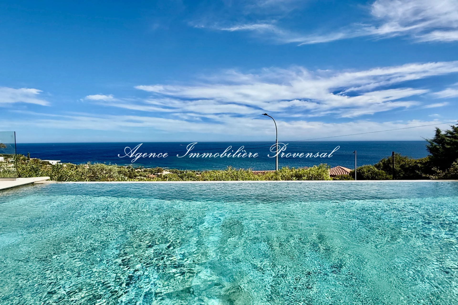 Découvrez cette très belle villa située dans un environnement privilégié offrant une vue mer panoramique exceptionnelle. Proposée en exclusivité par l'Agence Provensal, cette propriété de standing de 200 m² habitables est implantée sur un terrain de 1 200 m², à quelques minutes des plages et des commodités. 4 chambres – 3 salles de bains – Vue mer – Piscine