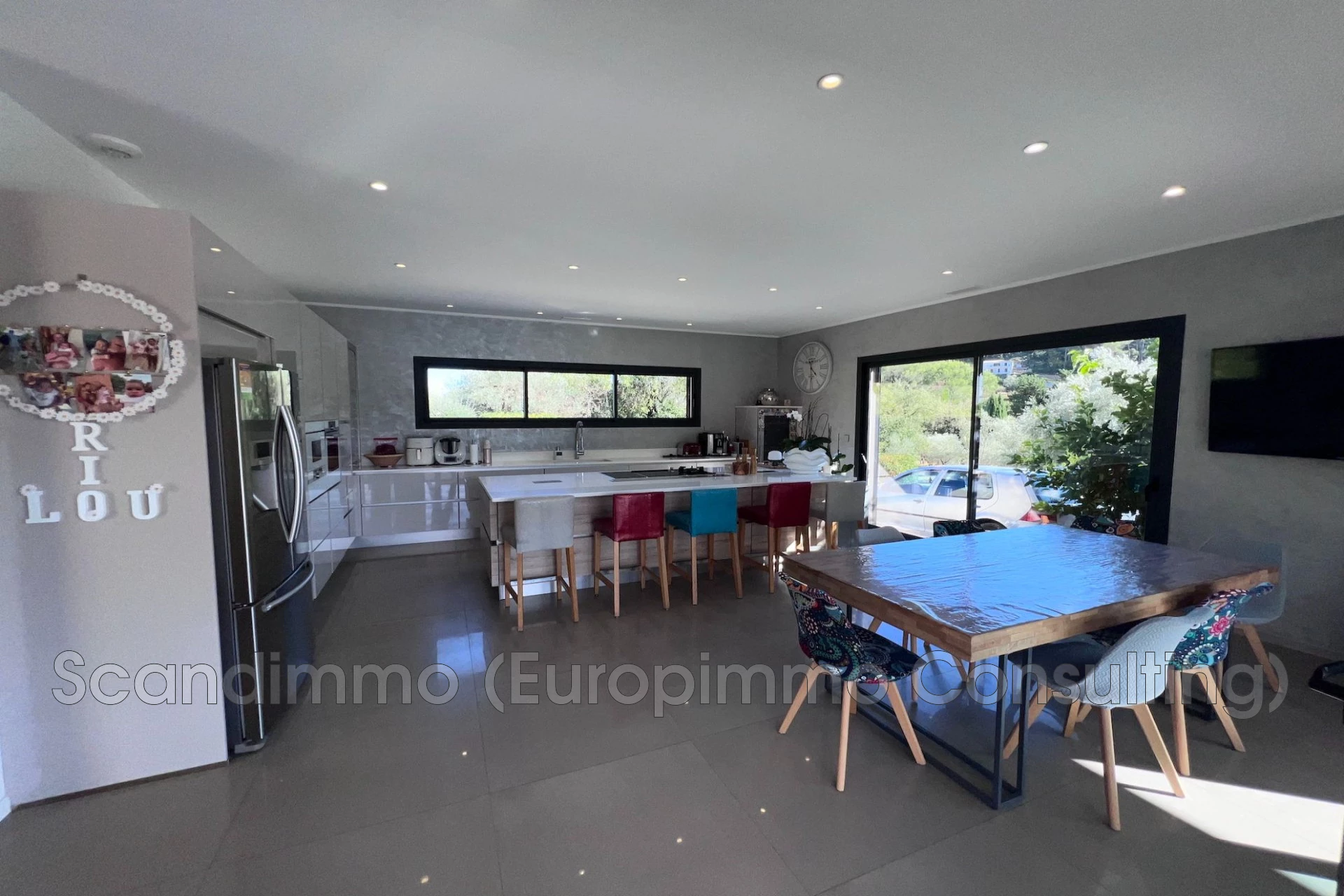 Une belle entrée avec dégagement accueille les visiteurs, espace vestiaire discret et fonctionnel, wc. Le salon, cosy et baigné de lumière s'ouvre sur une large terrasse ombragée et la piscine chauffée, véritable prolongement de la pièce de vie. Dans la continuité une cuisine ouverte avec espace repas au design contemporain parfaitement équipée. Un lieu idéal pour cuisiner, recevoir et partager. Elle s'ouvre par une large baie vitrée sur la terrasse et la piscine invitant à la détente et aux moments de convivialité.
