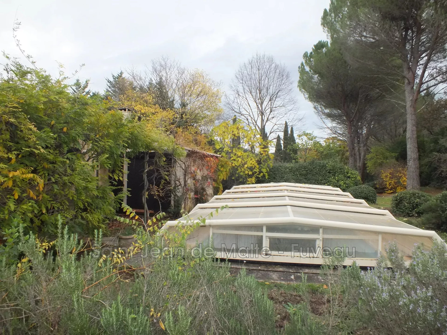 Trets - Au calme dans un agréable parc arboré et paysager de 4900m², belle villa de 210m² + 100m² de dépendances (garage double, véranda, jardin d'hiver et cave) avec piscine couverte. Superbe potentiel. Très beaux volumes. 4 chambres, 1 bureau, 2 SDE, un dressing et une lingerie auxquels viennent s'ajouter un beau séjour de 42m² et une grande cuisine avec coin repas de 23m². Aucun vis-à-vis, quartier calme et recherché.