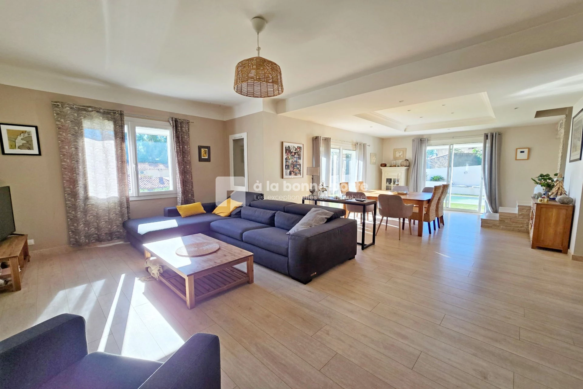 Située dans un secteur résidentiel calme, cette maison offre une surface habitable d'environ 183 m² répartie sur deux niveaux. Les volumes de la pièce de vie, proche de 50 m², apportent une vraie sensation d'espace. La cuisine est attenante et l'ensemble donne sur la terrasse et la piscine.
