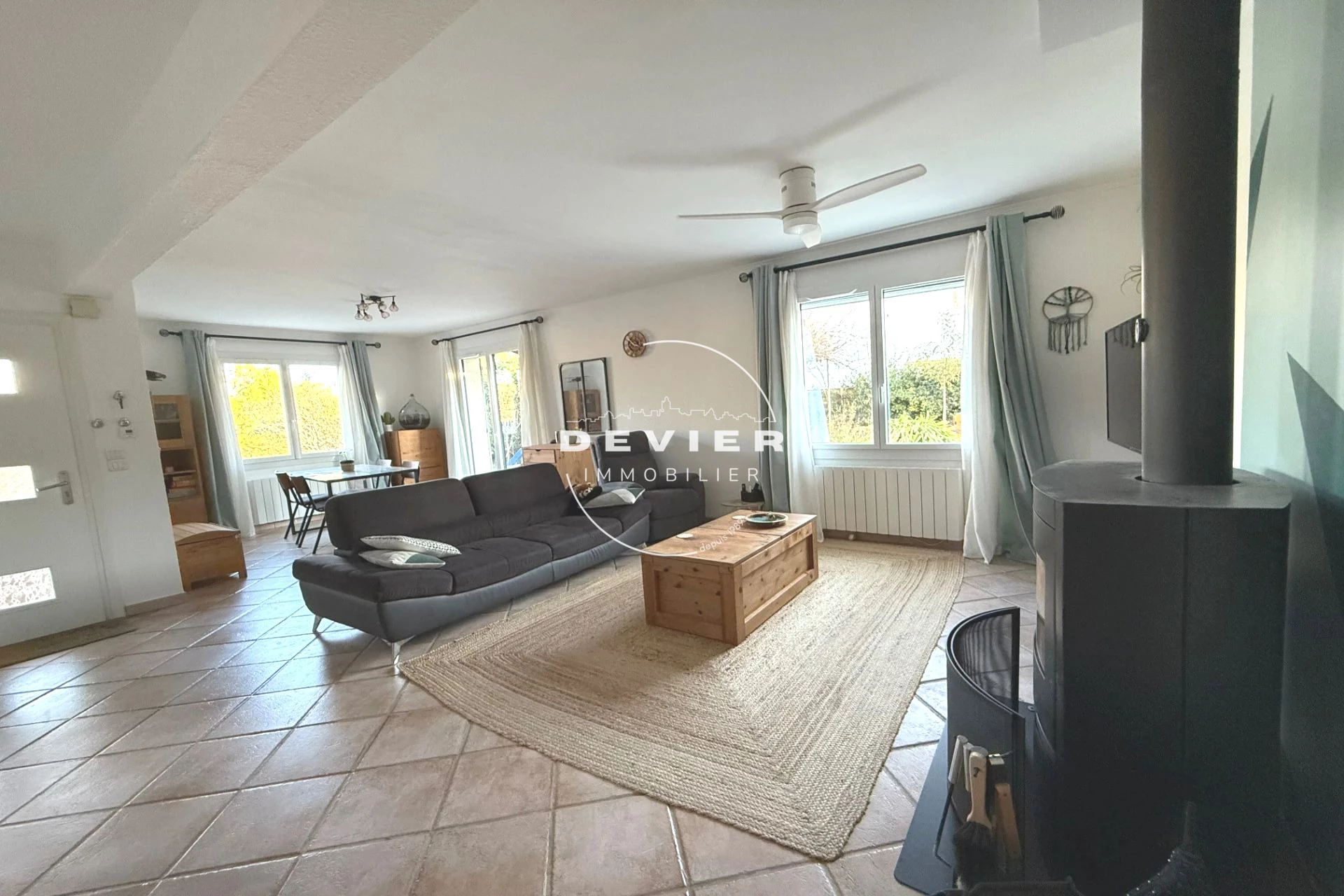 - Espace de vie lumineux comprenant un séjour un poêle à bois, une salle à manger et une cuisine aménagée (environ 47 m²)
