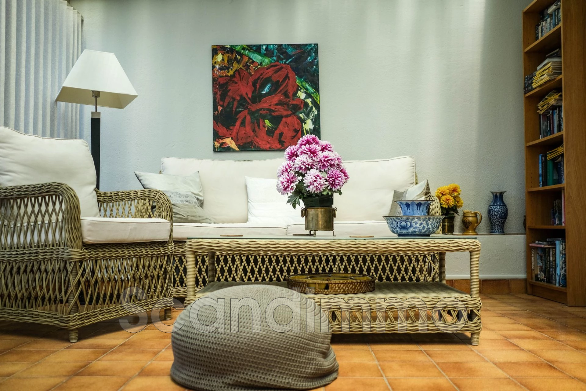 À l'arrière de la maison se trouve un jardin accueillant avec une belle piscine. Il y a également un forage.