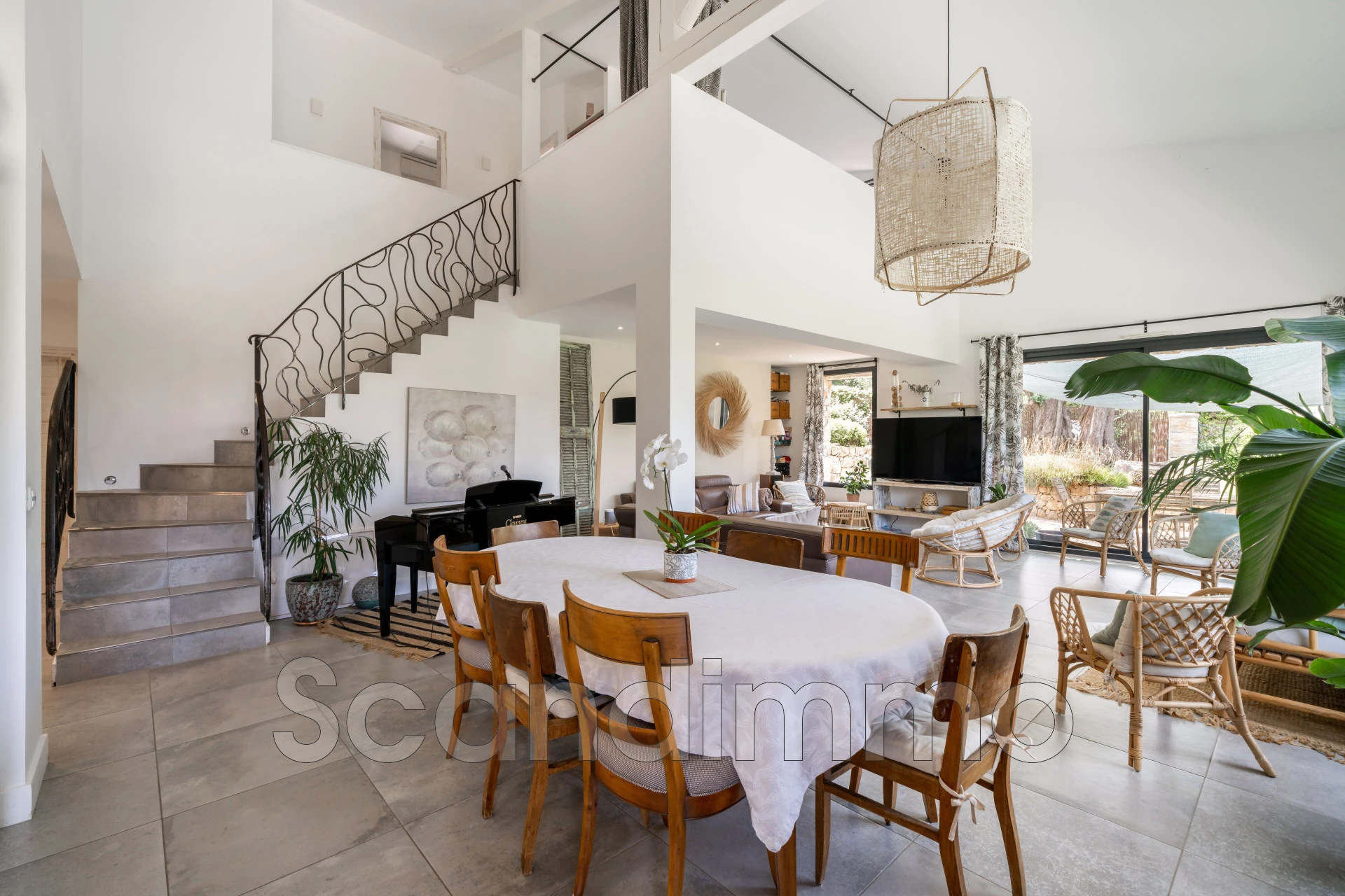 En contrebas, une annexe indépendante de 60 m², organisée en 3 pièces avec jardin privatif, offre de multiples possibilités : hébergement d'invités, bureau, espace bien-être ou location saisonnière haut de gamme.