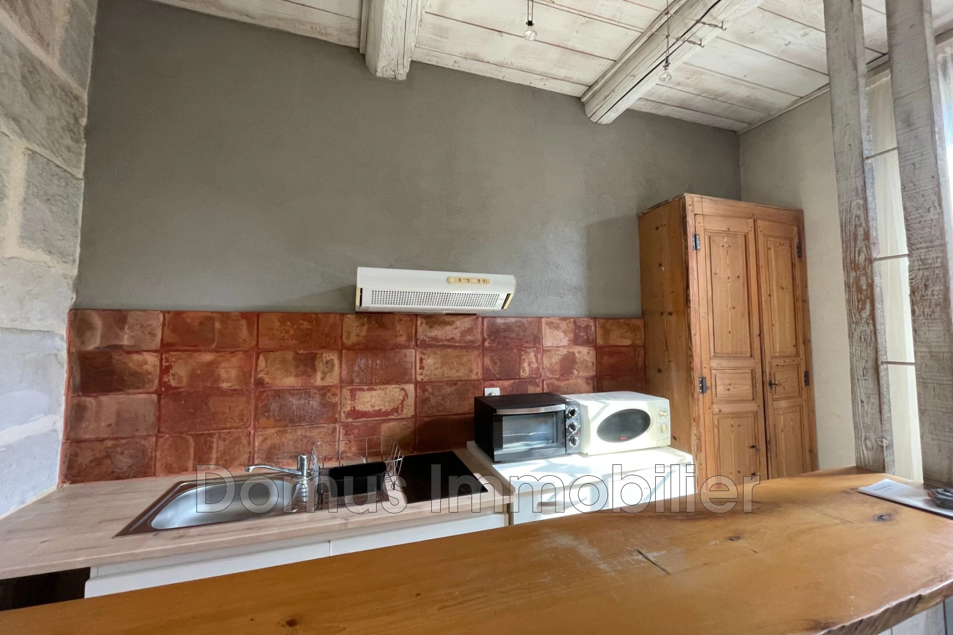 En plein centre de Barbentane, venez découvrir cet immeuble ancien composé de trois appartements (Deux T2 et un studio avec chambre en mezzanine et terrasse au dernier étage) tous loués en meublé.