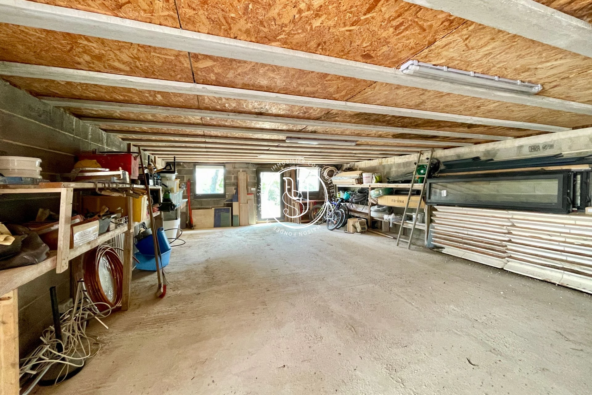 Une aire de bien-être spacieuse accessible par un demi-escalier distribuant trois pièces permet de créer des chambres supplémentaires, une salle de sport, un spa ou une cave à vin. S'ensuivent un vaste atelier de 65 m², un bûcher et deux garages de 42 m² et 10 m².