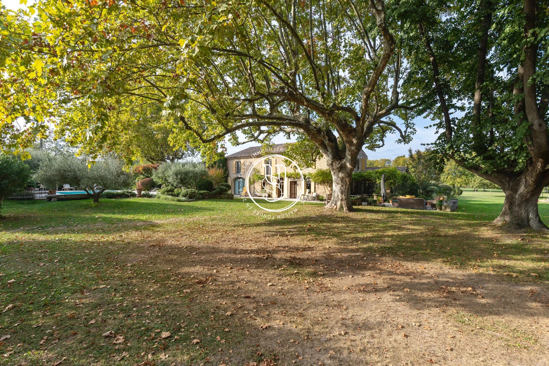 Située à Eygalières, superbe propriété du XVIII° siècle de plus de 450m², située au sein d'un beau terrain paysagé de 2,5 hectares. Cet ensemble se compose d'un mas de caractère, avec ses beaux volumes et restauré avec goût. Il se caractérise par son calme, ses vues, son ambiance apaisante sous ses arbres séculaires et plus généralement par la végétation enveloppante. Ces extérieurs se composent en effet d'un parc, d'espace potager, de paddocks et d'un espace piscine( 7 par 14) végétalisé, avec son kiosque aménagé. Il se complète par une maison de gardien attenante et par de vastes annexes : atelier, studio d'enregistrement, boxes pour chevaux et sellerie.