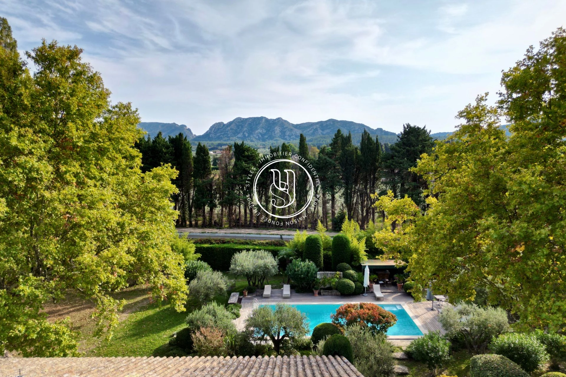 Située à Eygalières, superbe propriété du XVIII° siècle de plus de 450m², située au sein d'un beau terrain paysagé de 2,5 hectares. Cet ensemble se compose d'un mas de caractère, avec ses beaux volumes et restauré avec goût. Il se caractérise par son calme, ses vues, son ambiance apaisante sous ses arbres séculaires et plus généralement par la végétation enveloppante. Ces extérieurs se composent en effet d'un parc, d'espace potager, de paddocks et d'un espace piscine( 7 par 14) végétalisé, avec son kiosque aménagé. Il se complète par une maison de gardien attenante et par de vastes annexes : atelier, studio d'enregistrement, boxes pour chevaux et sellerie.