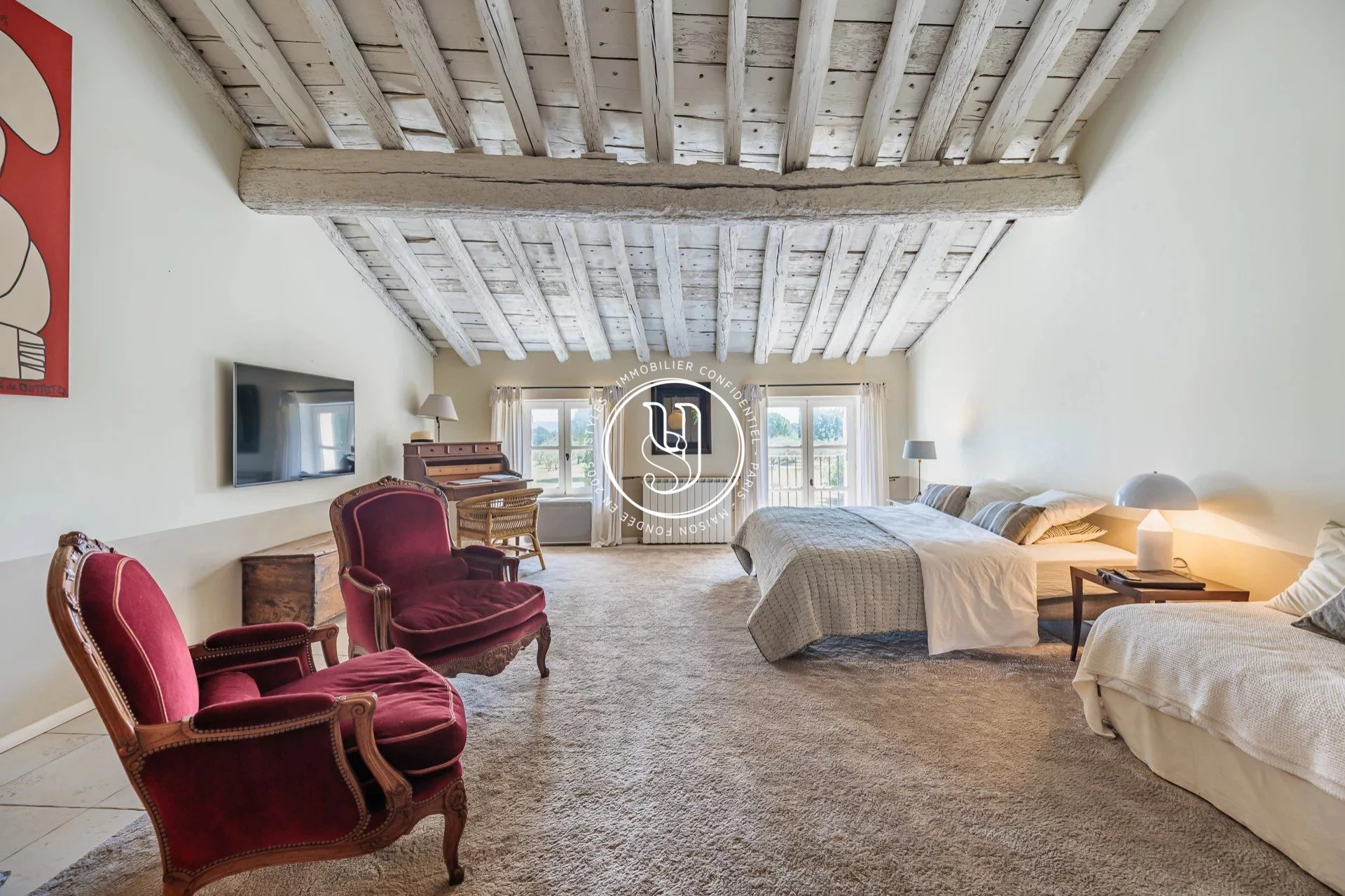 La propriété se compose de deux Mas, dont un Mas de 475 m2 du XIXe siècle entièrement restauré avec élégance. Pierres apparentes, volumes généreux et lumière naturelle inondent les espaces, offrant un confort moderne sans rien ôter à l'âme authentique des lieux. Le second Mas d'environ 110 m2 est complétement indépendant et est idéal pour recevoir des convives.