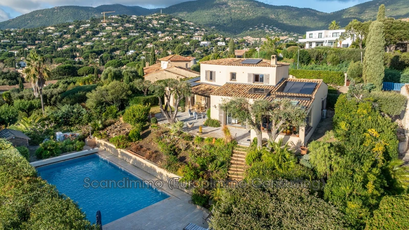 Très belle villa provençale avec superbe vue panoramique, 4 chambres, piscine, grand terrain, à quelques kilomètres du golfe de Saint-Tropez et ses plages magnifiques.