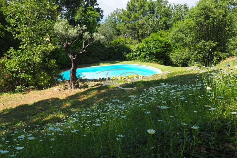 LA COLLE SUR LOUP, dans le quartier recherché et côté du Château de Montfort, superbe villa individuelle 7 pièces de 178m² habitables au CALME sur un terrain arboré de 1000m², EXPO SUD, au rez-de-jardin un vaste salon avec cheminée, séjour avec cuisine ouverte ouvrant sur une grande TERRASSE en bois avec PISCINE...