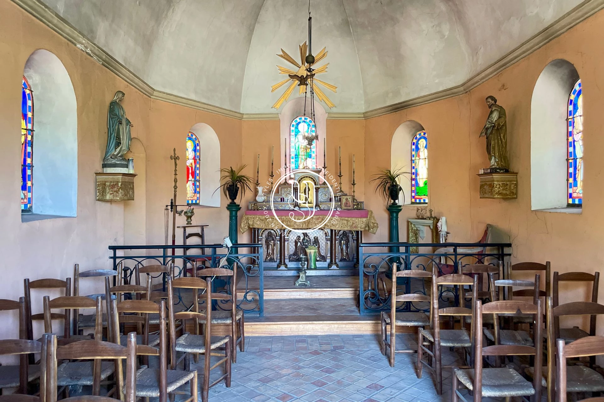 L'extérieur, soigné sans être contraint, comprend un large parvis d'accueil, des terrasses en toiture pour des apéritifs face aux montagnes, et une piscine de 12 x 5 mètres pour savourer les étés provençaux. Une chapelle consacrée à Saint Marc, chargée de spiritualité, complète ce tableau d'exception. Un atelier, plusieurs caves voûtées et sous-terrasses totalisent environ 215 m² d'espaces annexes pour vos projets ou véhicules. Le caractère reste préservé même à l'extérieur de la demeure : puits, jardin de curé, protecteur et discret avec sa rocaille, restanques sous les arbres anciens, — un mariage réussi entre confort contemporain et cachet patrimonial.