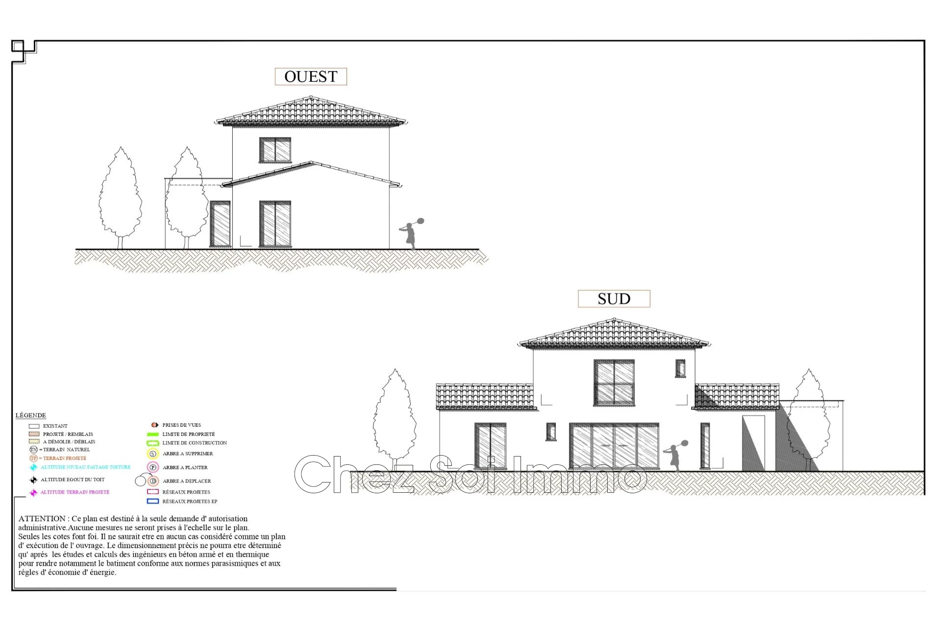 Terrain de 1800 m2 avec permis de construire pour une maison de 126 m2 plus piscine.