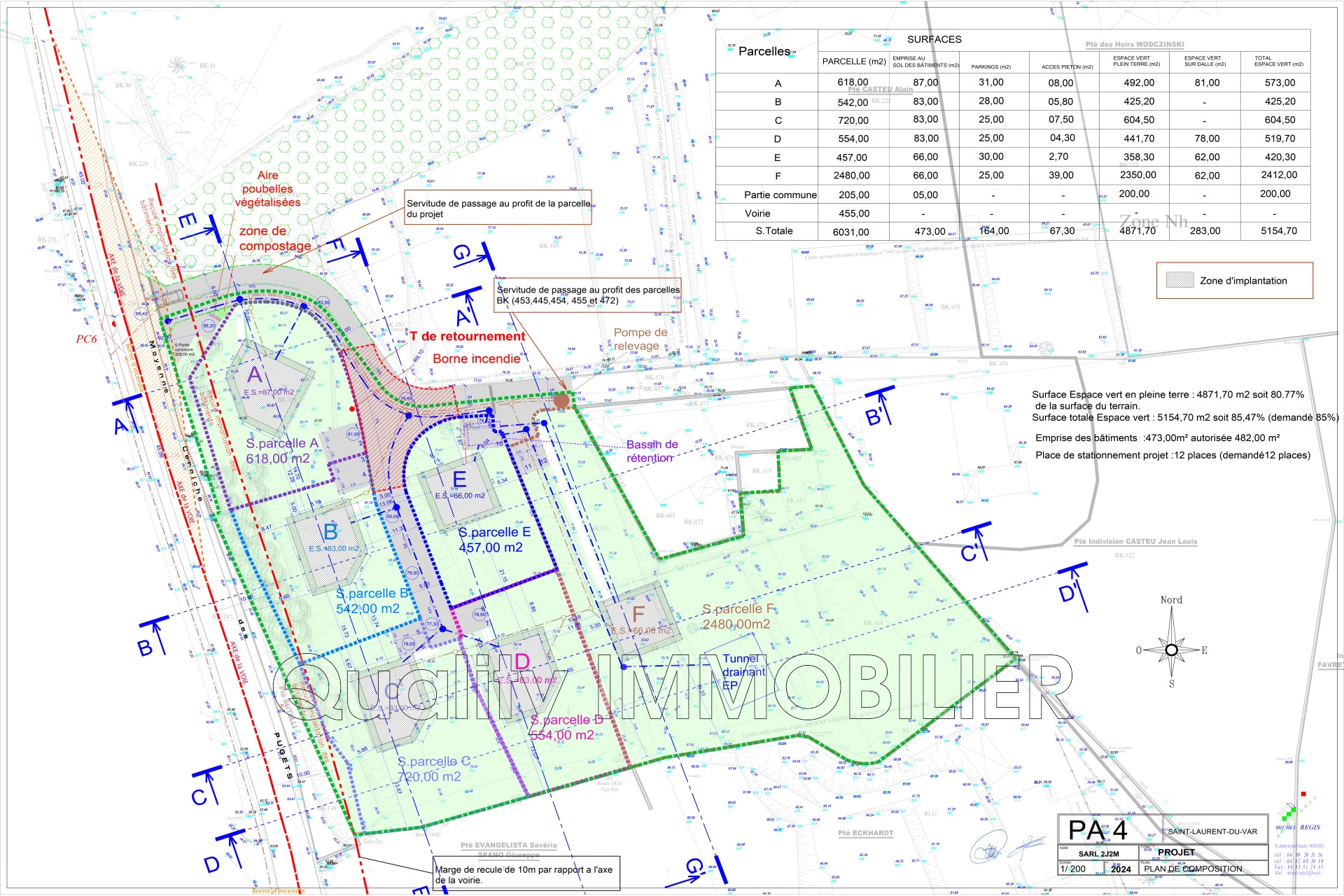 Terrain à Bâtir de 554 m², LOT D, au sein d'un mini lotissement de 6 Villas pour villa emprise au sol de 83 m² sur 2 niveaux soit environ 166 m² de villa.